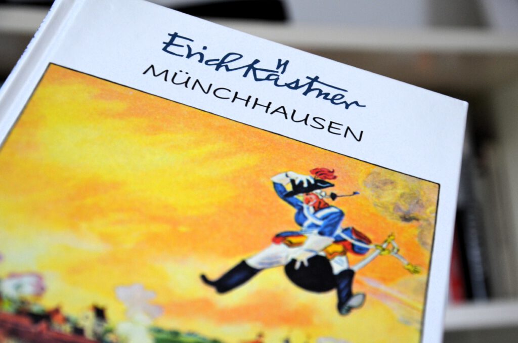 Nach einem Besuch in Bodenwerder war klar: Ich muss mich noch einmal um den Lügenbaron kümmern. Im örtlichen Münchhausen-Museum erwarb ich eine wunderbare Ausgabe von Erich Kästner (1899–1974), der Münchhausen für kleine und große Leute neu erzählt hat. Die Geschichten wirken noch immer frisch und witzig – ich habe sie an einem Abend gelesen.